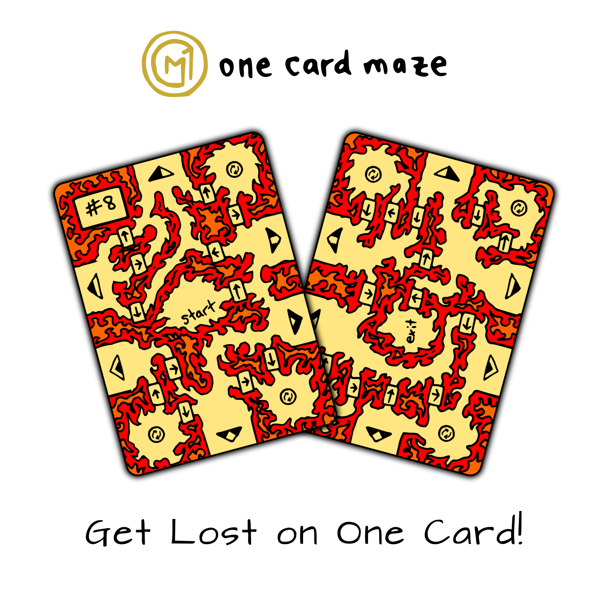 One Card Maze is a maze that twists and turns around a single card. Travel through the maze by rotating and flipping the card to unlock doors. As you do, the maze will look different in changing orientations. Getting lost is all part of the game!