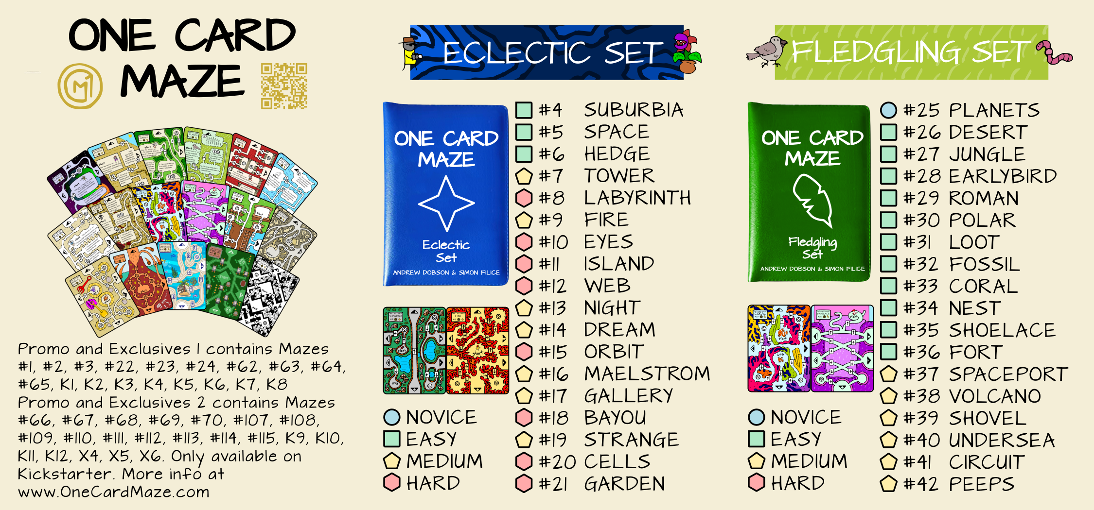 The Promo & Exclusive 1 Set includes mazes #1, #2, #3, #22, #23, #24, #62, #63, #64, #65, K1, K2, K3, K4, K5, K6, K7, K8